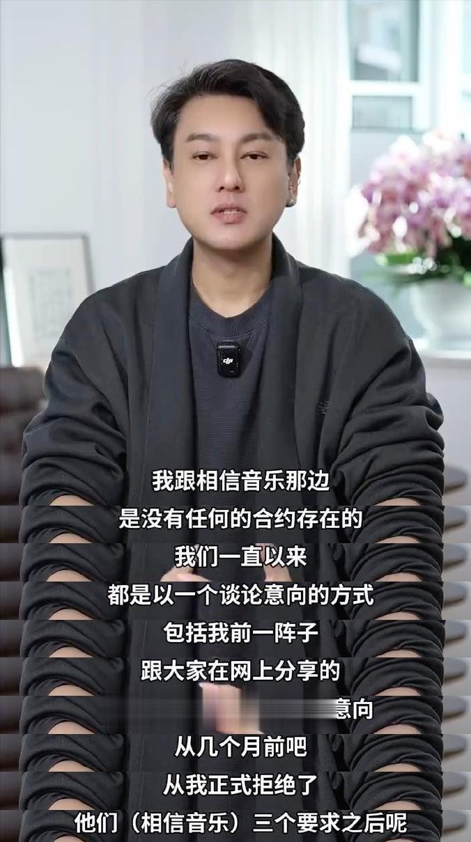 朱孝天在视频里说,慑服音乐找他签合约时提了三个条目。