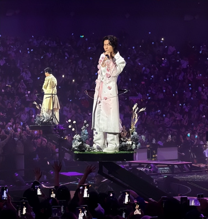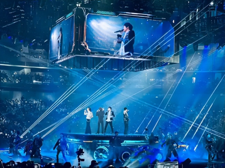 总计这个词舞台选拔“时空胶囊”盘算推算,主舞台是直径30米的圆形升降台,周围环绕着8块LED巨幕,配合360度旋转灯光,几乎就像把《流星花坛》里的星空搬到了实践。