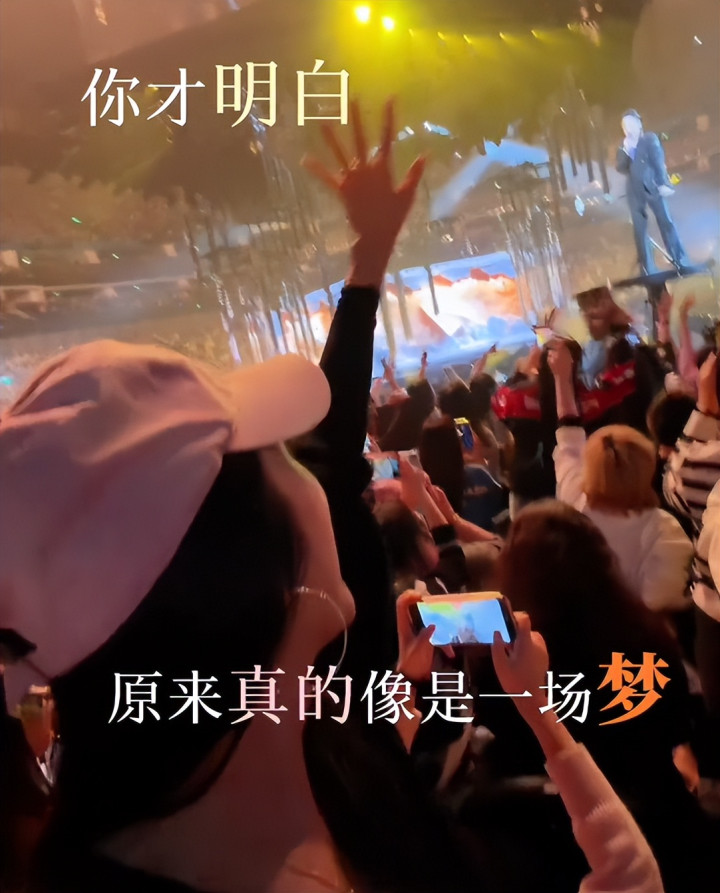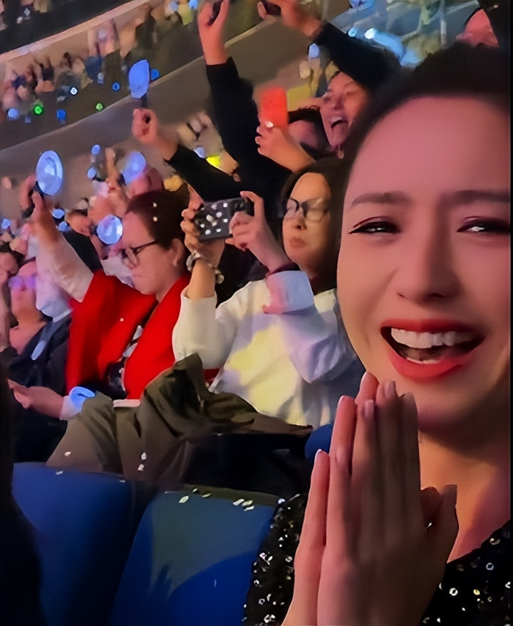 来看演唱会的她诚然画着淡妆,但头发扎起来后发际线很秃,笑起来眼角的皱纹比独揽的素东说念主还抢镜。