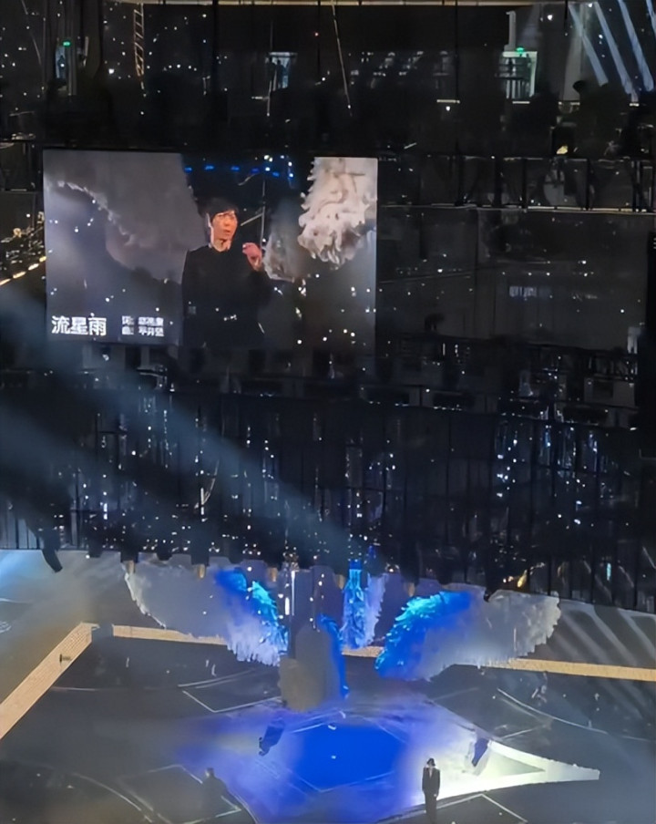 舞台上空的水晶灯更是任性,吊灯还会跟着歌曲变换造型,唱《情非得已》时造成流星形势,唱《我是真的真的很爱你》时又造成爱心,现场粉丝平直哭成一派。